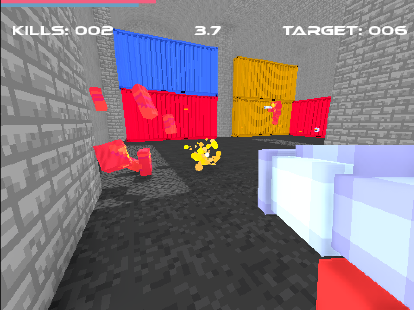 You're stuck in a race to 100 kills against yourself... kinda. Every 5 seconds time loops back and you must kill your past selves before they kill you. Every 30 seconds there is a kill target you must reach. Get to 100 kills and you win. Good luck...